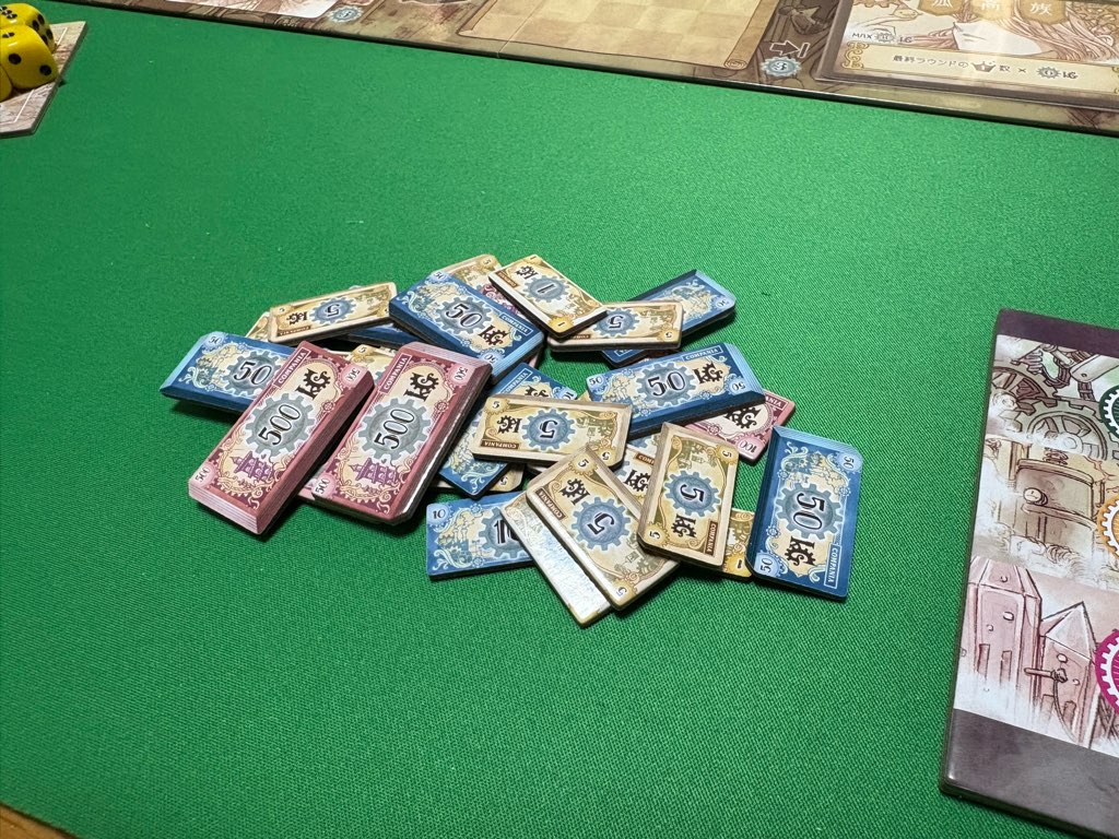 上記2つの処理が終わった時点でゲーム終了。手元にあるお金を合計し、一番お金を持っているプレイヤーの勝利です。